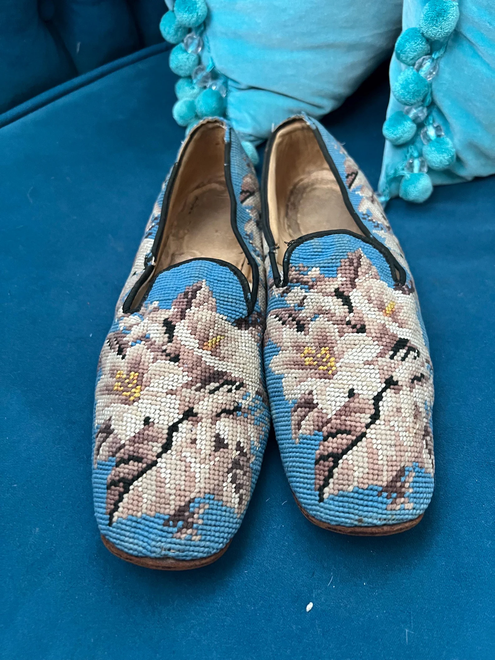 Be the first to review “Antique 1880 English Men’s Embroidered House Slippers”