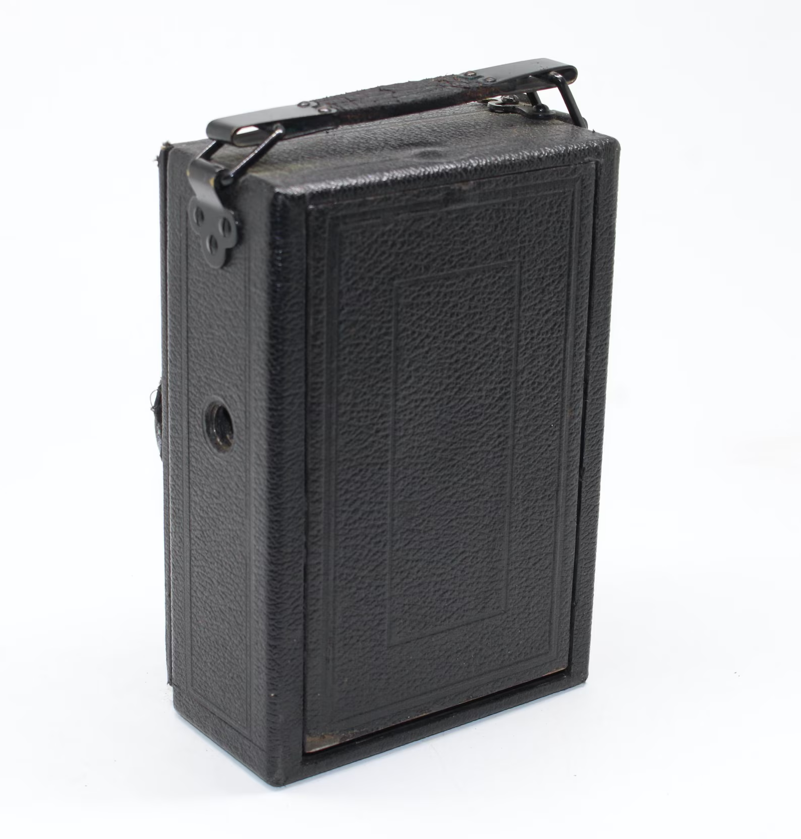 The camera shutter and apertures are working on all settings. The camera body and lens are in very good condition considering the camera is well over 100 years old. The bellows appear light-tight in torch tests, but I would still recommend a dark cloth should be placed over them if you wanted to take photos with the camera. The camera measures just 12cm high, 8.5cm wide and 5cm deep when closed.